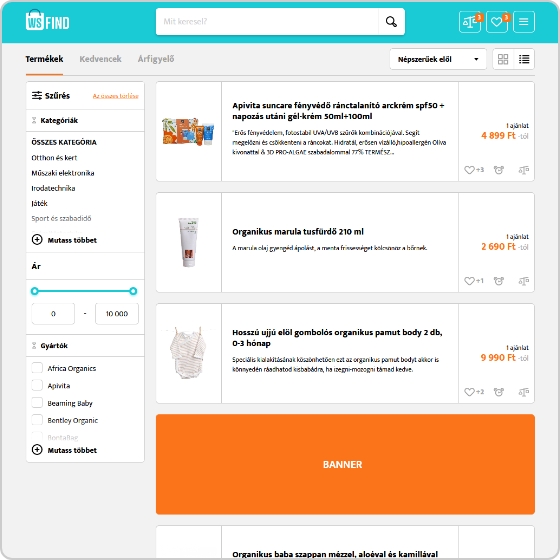 A webshop profil oldalakon jelenik meg jelenik meg a vásárolt időtartam alatt. Eszköz felbontáshoz alkalmazkodó méretű.