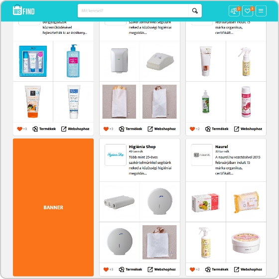 A webshop lista oldalakon jelenik meg egy webshop kártyával megegyező méretű listaelemként a vásárolt időtartam alatt. Eszköz felbontáshoz alkalmazkodó méretű.